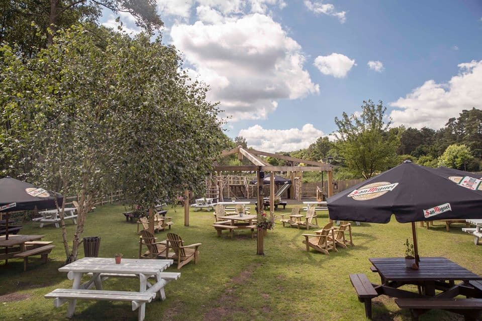 The Holly Bush in Frensham has a good sized garden with lots of seating. There is even an outside bar. The garden does not have a play area but children are welcome and there is a great kids' menu. Book here.