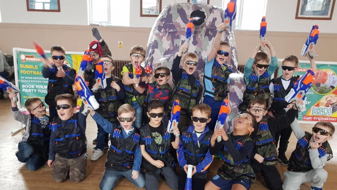 They offer the very best Nerf Parties in the UK with Inflatables, mixture of Nerf Guns, safety glasses, Army Tank and much, much more.