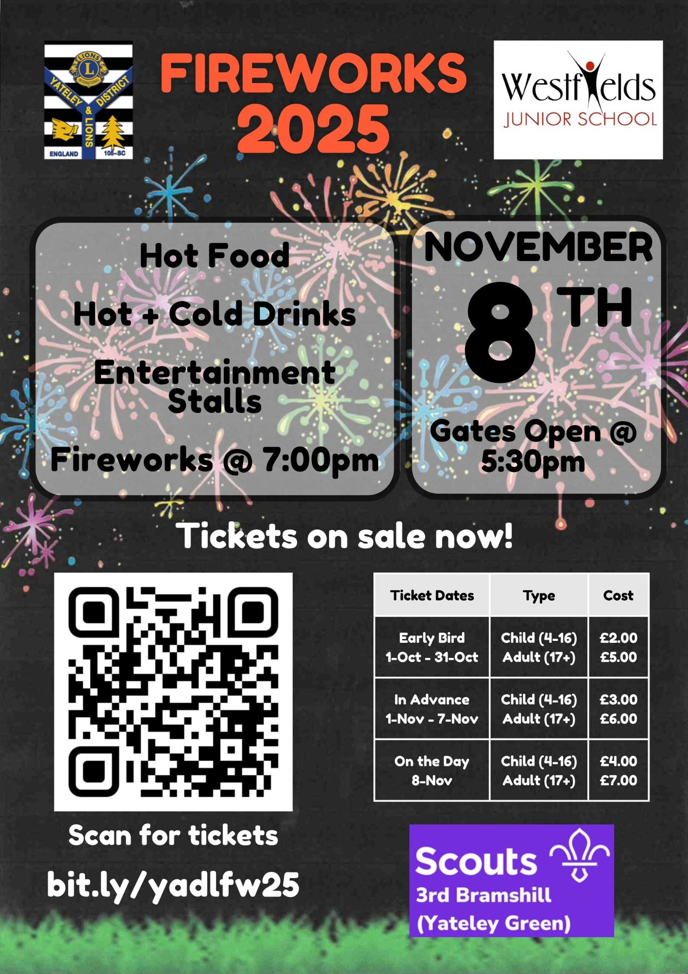 Yateley & District Lions look forward to welcoming you to a professional fireworks display